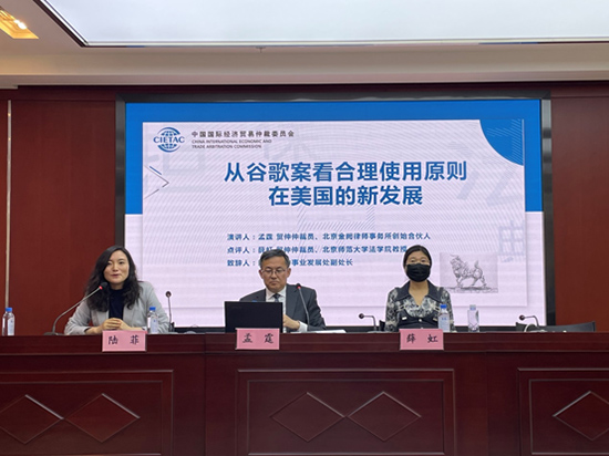 2021年6月9日,由貿(mào)仲舉辦的“從谷歌案看合理使用原則在美國(guó)的新發(fā)展”專(zhuān)題講座在北京順利舉行。本次講座特邀貿(mào)仲仲裁員、北京金闕律師事務(wù)所創(chuàng)始合伙人孟霆先生對(duì)谷歌公司與甲骨文公司之間長(zhǎng)達(dá)十年的著作權(quán)之爭(zhēng)進(jìn)行解讀,貿(mào)仲仲裁員、北京師范大學(xué)法學(xué)院教授薛虹女士對(duì)本案進(jìn)行點(diǎn)評(píng)。近50位仲裁員、學(xué)者、律師及法律界人士在現(xiàn)場(chǎng)參加了此次講座。貿(mào)仲上海分會(huì)、西南分會(huì)、浙江分會(huì)、福建分會(huì)、絲路中心、江蘇中心、四川分會(huì)、山東分會(huì)以及海峽兩岸仲裁中心等在近十個(gè)城市設(shè)立分會(huì)場(chǎng)進(jìn)行視頻同步連線。