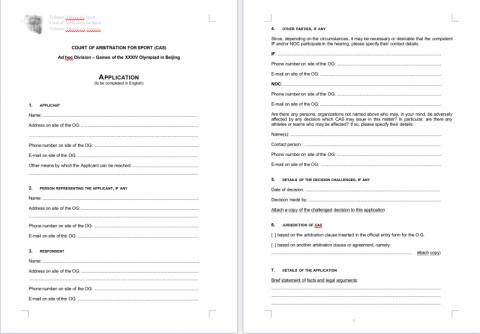 對(duì)于如何提交仲裁申請(qǐng)?王雯佳提醒,向CAS臨時(shí)仲裁庭提交申請(qǐng)應(yīng)以書(shū)面形式提交,以英文、法文或西班牙文書(shū)寫(xiě)。當(dāng)事人可在CAS臨時(shí)仲裁庭辦公室獲得一份標(biāo)準(zhǔn)申請(qǐng)表。