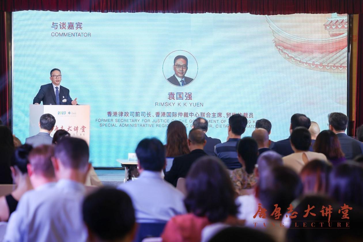 隨后,香港律政司前司長袁國強作為與談人發(fā)言。他從微觀和宏觀兩個視角對王軼教授的演講進行了回應。在微觀上,他提出在數據屬性、數據利益的分配以及涉數據問題的法律規(guī)范類型等問題上,尚待進一步研究;在宏觀上,數據和先進科技的關系也值得深思,亟需研究科技將如何影響爭議解決進而影響公正。