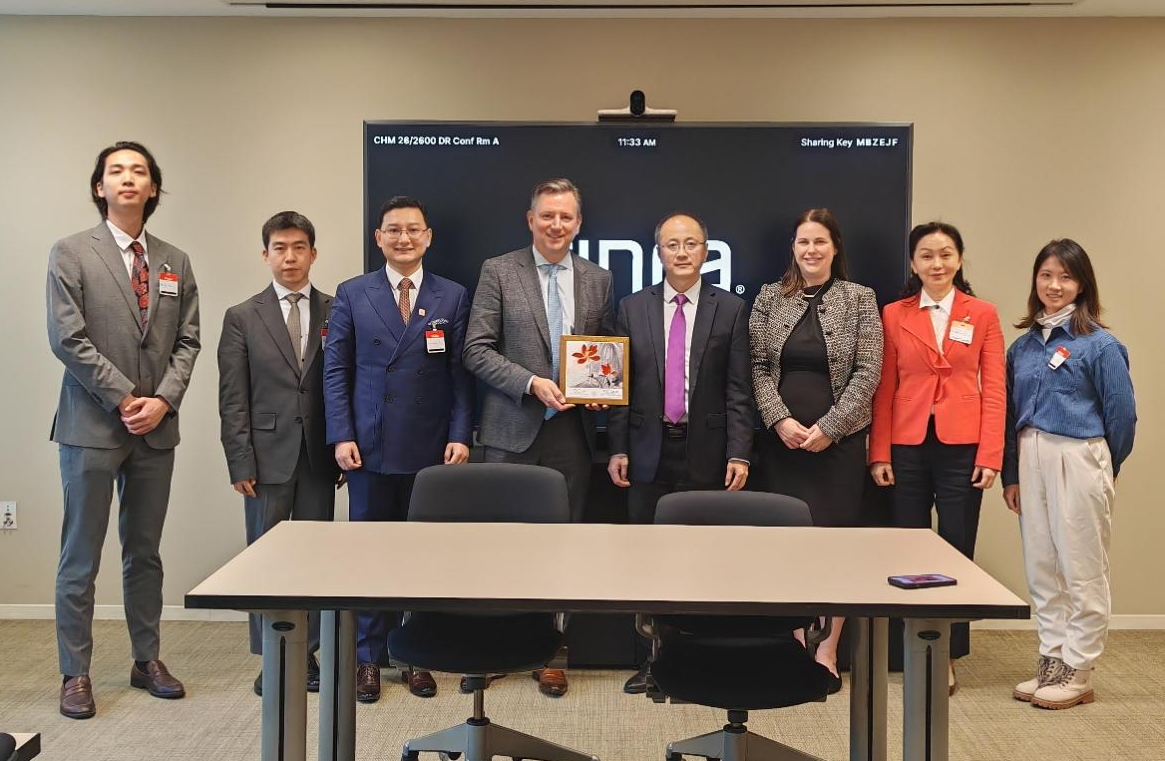 美國金融業(yè)監(jiān)管局爭議解決中心芝加哥區(qū)域辦公室副總監(jiān)摩根·約翰遜、深國仲院長助理兼任中國(深圳)知識產(chǎn)權仲裁中心主任陳巧梅、深國仲國際合作與發(fā)展處處長兼深國仲江門中心主任黃郭勇等參加業(yè)務交流。