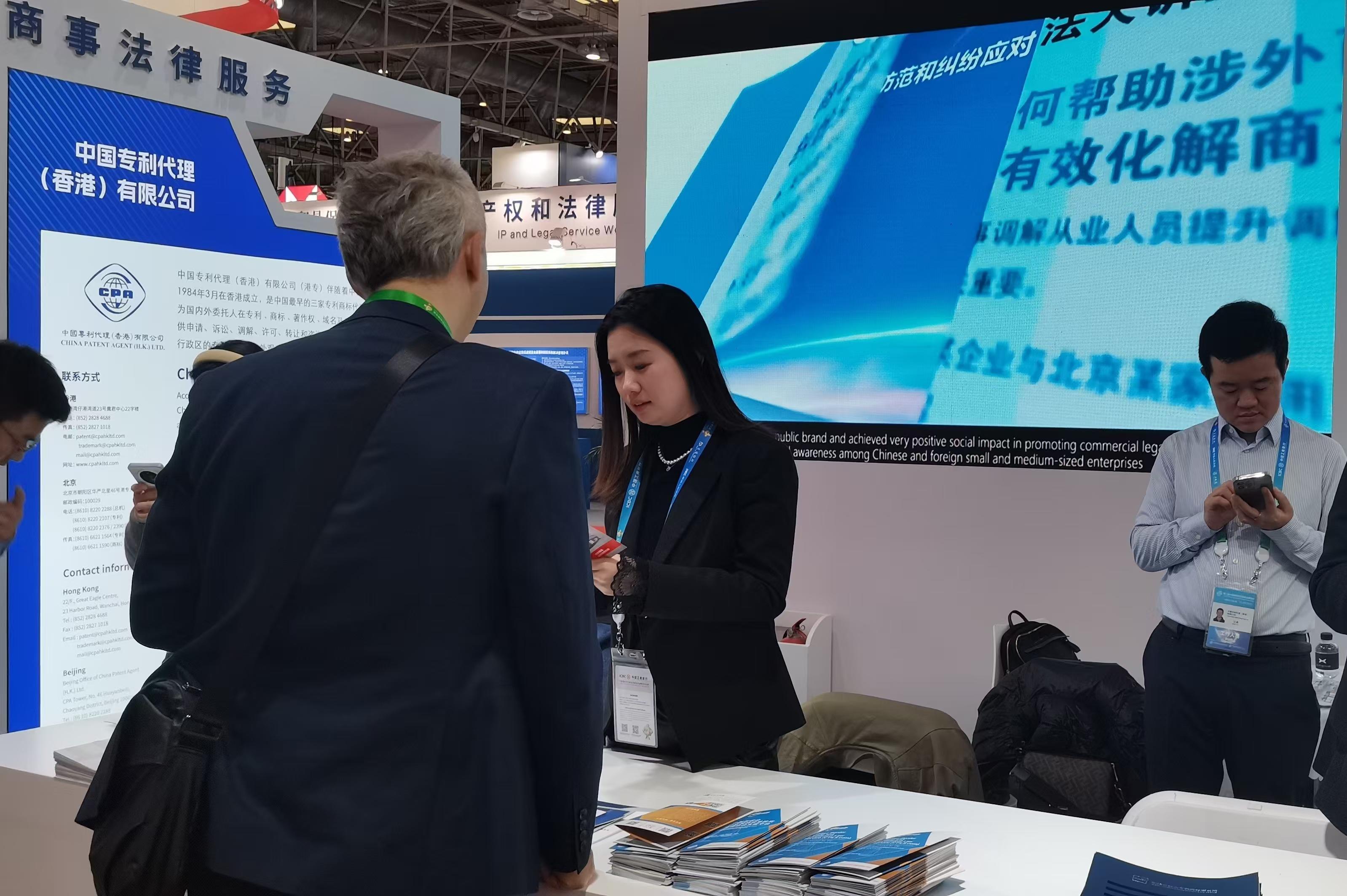 緊鄰這一展臺的,同樣是法律類機(jī)構(gòu)或組織,他們也在這次鏈博會(huì)上承擔(dān)著相關(guān)工作任務(wù)。例如,中國貿(mào)促會(huì)會(huì)同北京市知識產(chǎn)權(quán)局、順義區(qū)市場監(jiān)管局等單位,設(shè)立知識產(chǎn)權(quán)和法律服務(wù)工作站,多家機(jī)構(gòu)專業(yè)人員進(jìn)駐,開設(shè)專利和商標(biāo)申請受理窗口,建立知識產(chǎn)權(quán)糾紛快速處理機(jī)制。