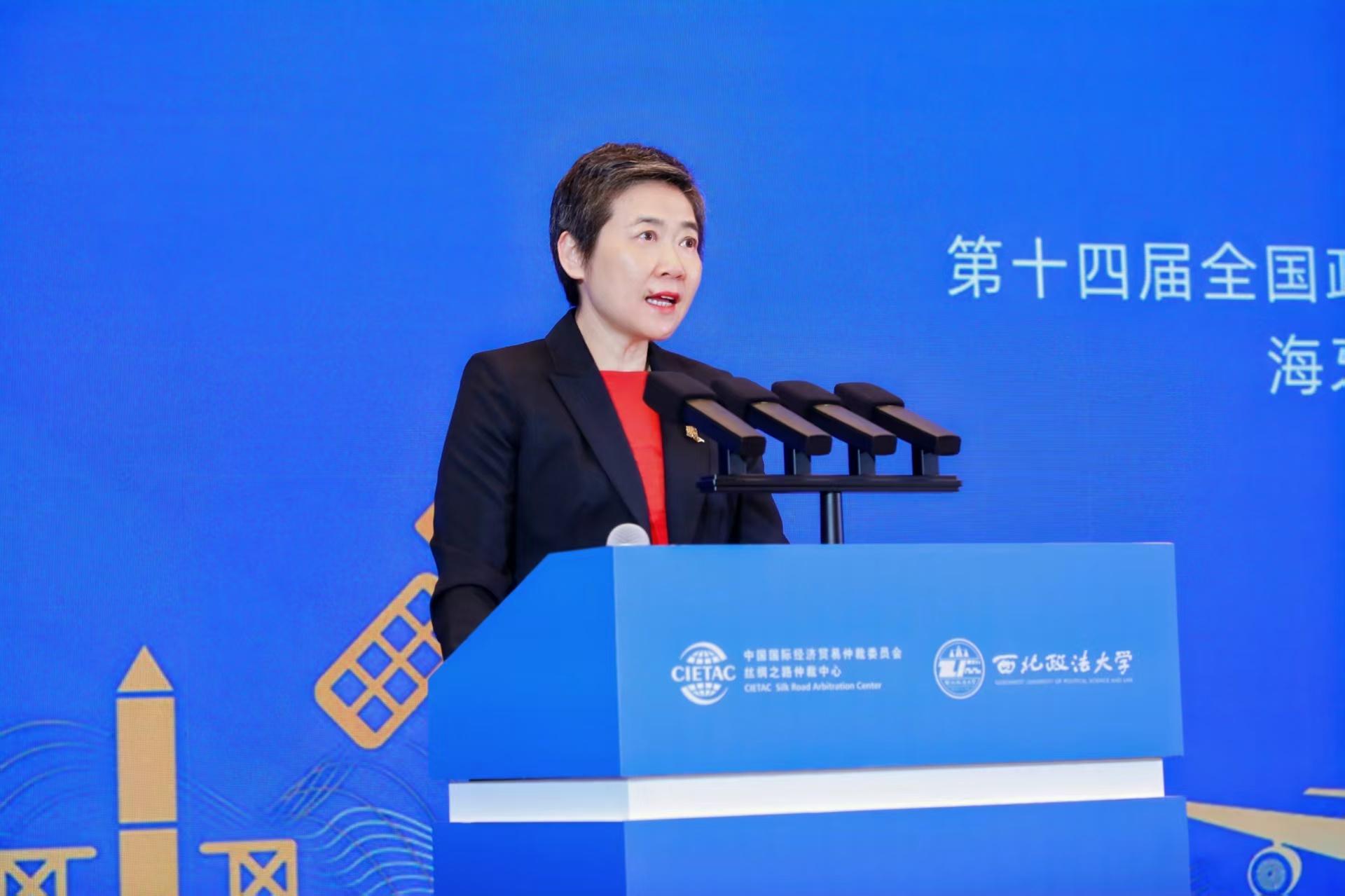 (貿(mào)仲絲綢之路仲裁中心副秘書長(zhǎng)蔣紅梅主持開幕式)