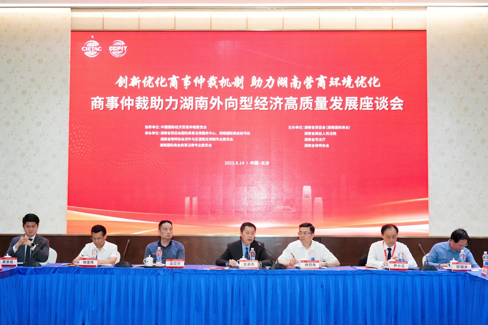 6月14日,商事仲裁助力湖南外向型經濟高質量發(fā)展座談會在湖南省長沙市成功舉辦。本次座談會由中國國際經濟貿易仲裁委員會(簡稱貿仲)指導,湖南省貿促會(湖南國際商會)、湖南省高級人民法院、湖南省司法廳、湖南省律師協(xié)會共同主辦。貿仲副主任兼秘書長王承杰、湖南省司法廳副廳長雷震宇、湖南省高級人民法院審判委員會專職委員尹小立、湖南省律師協(xié)會會長楊建偉、澳門法律交流協(xié)進會會長黃景禧以及湖南師范大學法學院副院長歐福永參加座談會并講話。湖南省貿促會黨組成員、副會長傅丹舟主持座談會。來自湖南省重點涉外企業(yè)及律師事務所的負責人和資深專家以及來自政府部門、行業(yè)協(xié)會、高校共40余位代表參加了座談會。