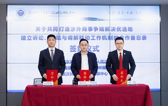 11月13日,武漢仲裁委員會(huì)(武漢國際仲裁中心)、武漢東湖新技術(shù)開發(fā)區(qū)人民法院與武漢長(zhǎng)江國際商事調(diào)解中心在武漢共同簽署了《關(guān)于共同打造涉外商事爭(zhēng)端解決優(yōu)選地建立訴訟、仲裁與調(diào)解聯(lián)動(dòng)工作機(jī)制的合作備忘錄》(以下簡(jiǎn)稱《合作備忘錄》),標(biāo)志著三方在涉外商事糾紛解決領(lǐng)域的深度合作正式啟動(dòng),助推武漢在構(gòu)建法治化、國際化營商環(huán)境方面加速發(fā)展。