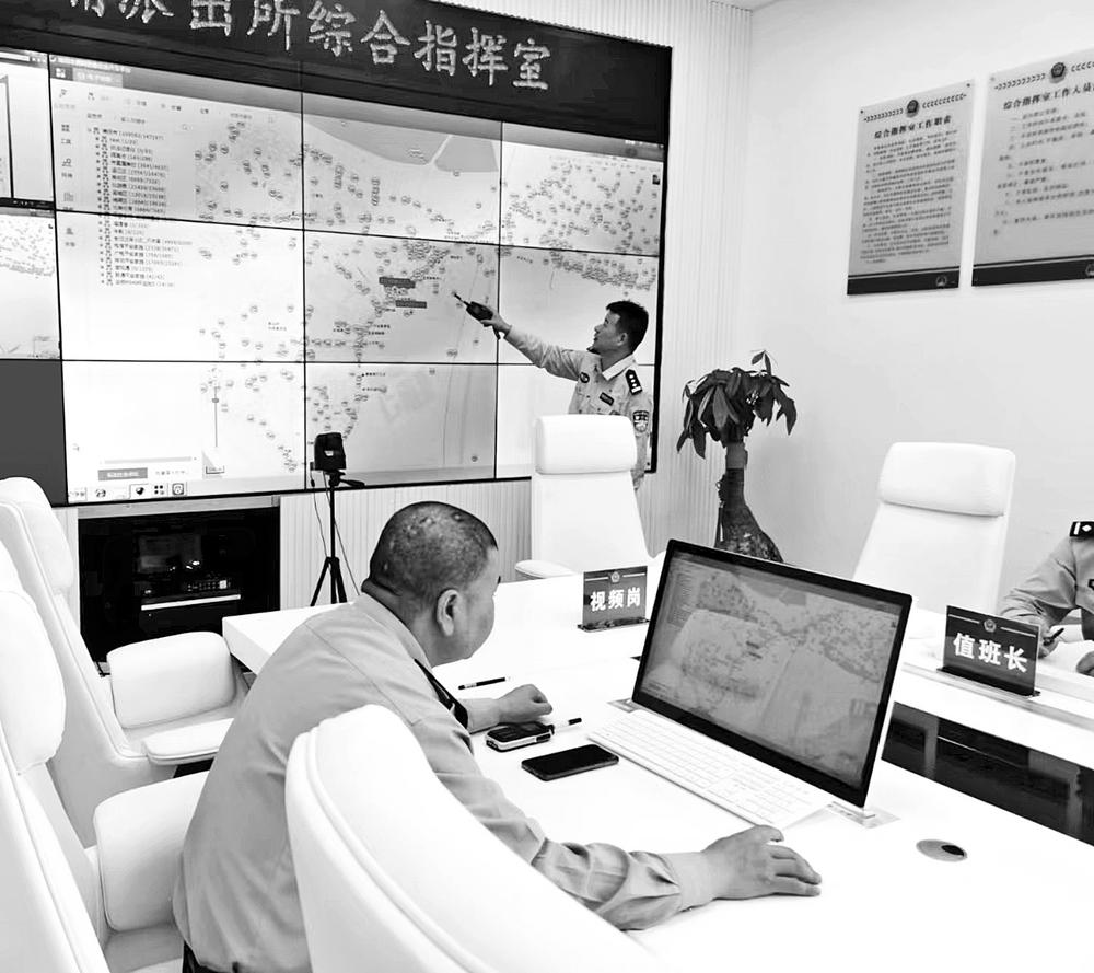 接到報(bào)警后,派出所綜合指揮室迅速下達(dá)指揮調(diào)度指令。李昇 攝