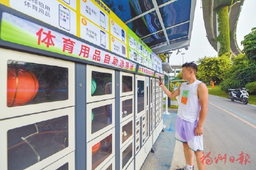 市民在馬尾區(qū)智慧體育公園內(nèi)使用體育用品自助選用箱。本報(bào)記者 林雙偉攝