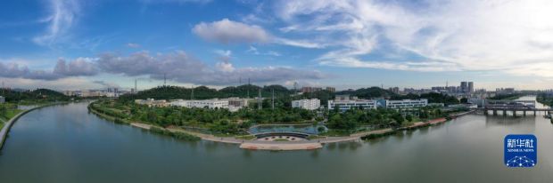 茅洲河畔的燕羅濕地公園美景如畫(2022年7月8日攝)。 新華社記者 梁旭 攝