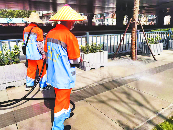 “因為中午氣溫高,我們強化了清晨作業(yè)力度,趁著氣溫不高,對責(zé)任路段進(jìn)行徹底清掃。過了中午后,一般僅開展巡視和撿拾垃圾工作,盡量避免長時間暴露在烈日下作業(yè)。”化玉紅說,“另外,為了減輕環(huán)衛(wèi)工人工作負(fù)擔(dān),我們增加了洗掃車、清洗車、沖洗車等機械化車輛的作業(yè)頻次,每天避開交通高峰期,分早、晚班次開展機械化作業(yè)。”
