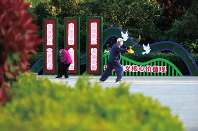 “推窗見綠,出門進園”,許多口袋公園成為市民晨練休閑好去處。