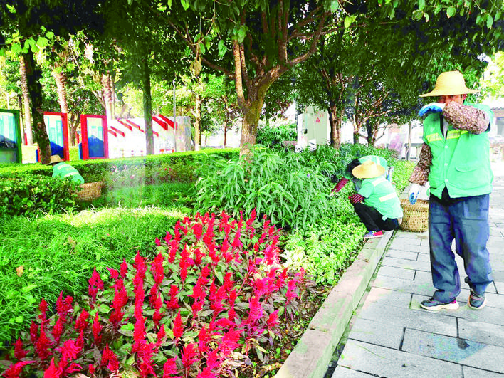 今夏高溫伏旱,城區(qū)不少花木受損,園林工人趕在旅游節(jié)前及時補植、補栽各類喬、灌木50余萬株,更換和布置鮮花70余萬盆,在高鐵北站及貴賓通道補植廣玉蘭200余株,完成機場、高鐵站、重要入城大道綜合整治。目前濱江沿線三角梅、城區(qū)灌木綠籬生長較好。