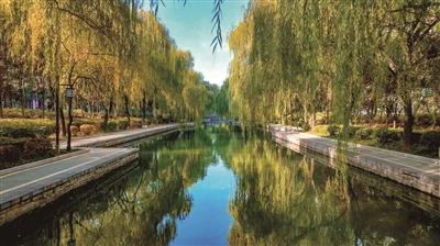 初冬時(shí)節(jié),城市水系,層林盡染,景色宜人。