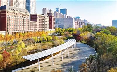 我市首個(gè)大型綠色海綿城市公園復(fù)興河公園。 記者 吳迪 攝