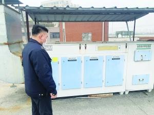 執(zhí)法人員在企業(yè)查看環(huán)保設(shè)施運(yùn)行情況