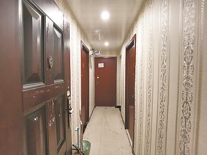 效果如何?記者對103號、104號兩幢小高層進行了“掃樓”,這兩幢樓最近多次被投訴。幾個樓層一跑,群租房的一些外觀特點不難辨別:房門大多還是交房時的原鐵門,一些只是將門鎖換成了密碼鎖,門上貼滿“開鎖”“搬家”小廣告無人清理……103號樓402室的鐵門半掩,看進去只能看到一條直角過道,兩側排布5個房間,均房門緊鎖,1個門上還貼著寫有“已租、勿擾”的紙條。過道里裝有感應燈,上方架有路由器,地上擺著垃圾桶和滅火器,此外別無他物。整套房子的原結構已一點看不出來,過道入口處墻壁上高處嵌著一只燃氣黃色開關閥門,大概可以猜測出這里曾是廚房的位置;104號樓401室也是房門開著,里面結構與上述402室相似,只是房間有6個。其中1個房間門上插著鑰匙,擰開一看里面應是原衛(wèi)生間的一部分,如今已被改造成了洗衣房。