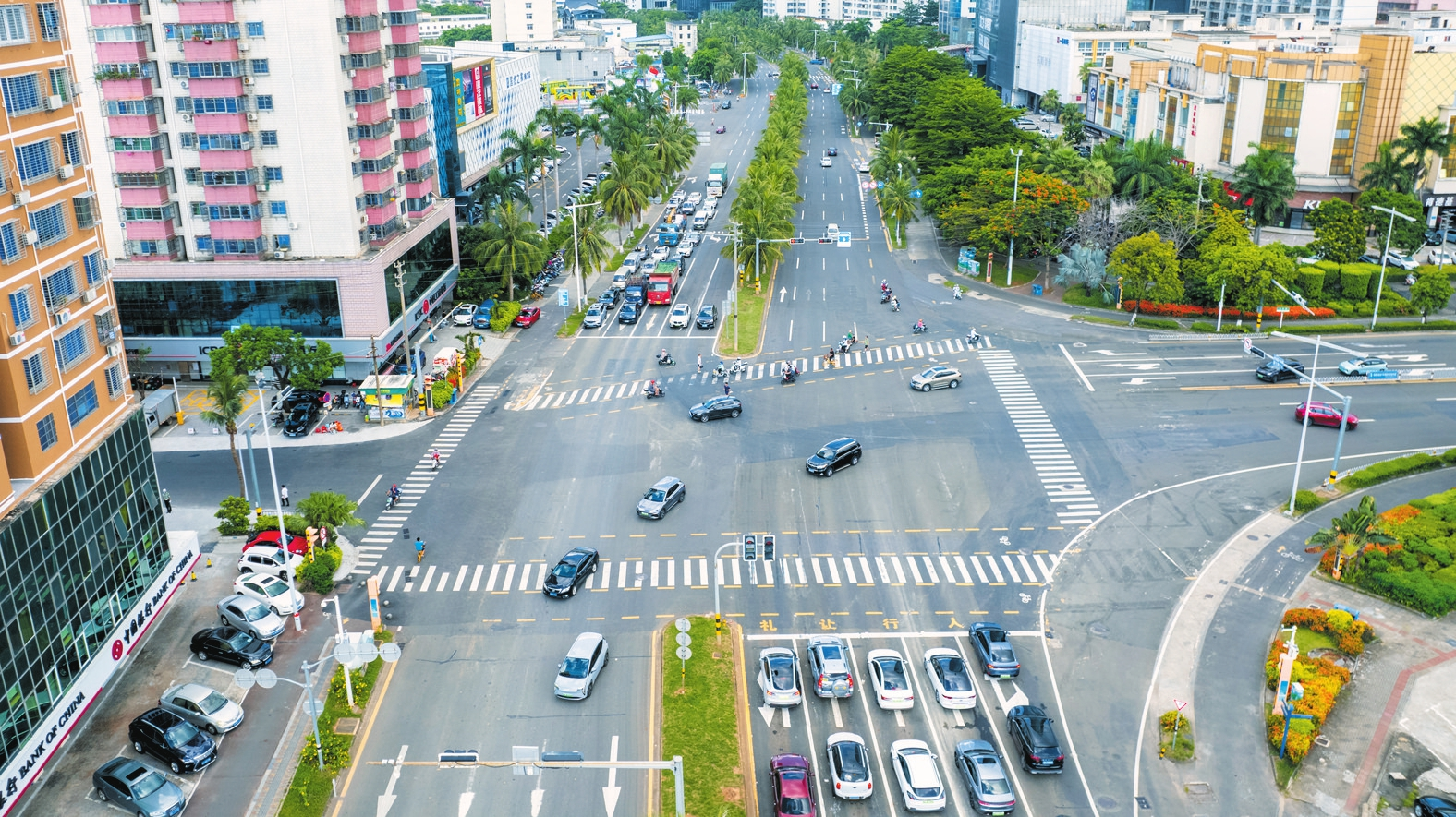 海口海港路與濱海大道交會路口的積水點完成改造后,即便遇到暴雨,該處的積水也會很快消退。記者 陳長宇 攝
