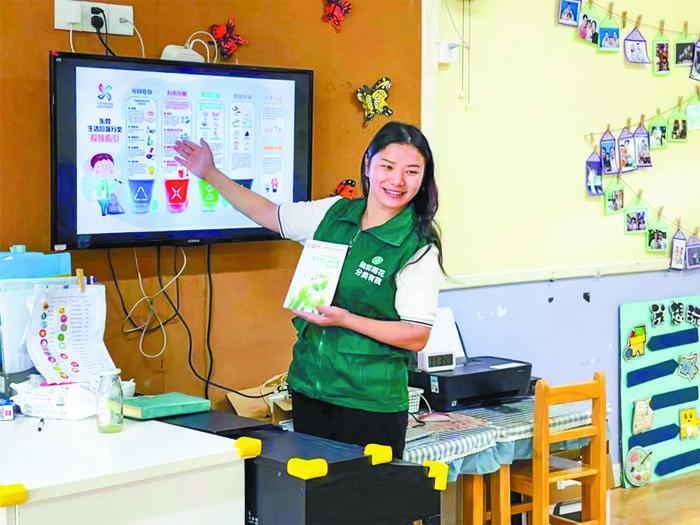一件舊衣服、一張廢舊紙、一個舊輪胎……這些被扔掉的“垃圾”,在志愿者、雨花臺區(qū)家禾齊修幼兒園老師陳二麗以及孩子們的手中,就會變成一件件小工藝品。陳二麗始終認(rèn)為,家庭是幼兒生活的第一環(huán)境,對幼兒垃圾分類習(xí)慣的養(yǎng)成具有重要作用。為讓家長積極參與到垃圾分類中,她通過晨間談話、家園欄、家委會以及垃圾分類倡議宣誓等活動,激勵家長自主參與到幼兒園垃圾分類工作的策劃與宣傳中。她還通過“21天習(xí)慣打卡”引導(dǎo)孩子及家長每日開展垃圾分類行動,從“知道”轉(zhuǎn)變成“習(xí)慣”。