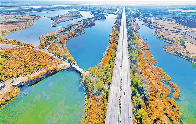 11月6日,從空中俯瞰黃河賀蘭段濕地,美景如畫(huà)。近年來(lái),銀川市不斷推進(jìn)“美麗河湖”建設(shè),呈現(xiàn)出城水相依、人水和諧的生態(tài)宜居畫(huà)卷。 (記者 馬楠 王洋 攝)