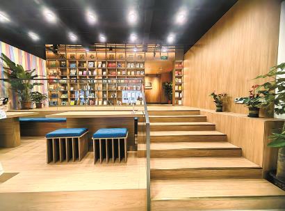 這個(gè)大空間能舉辦各種活動(dòng)。目前,“曉竹”暑期班、企業(yè)人才沙龍、華東師大各院系配送的科普手工活動(dòng)、“悅紫竹”議事會(huì)、“紅領(lǐng)巾”議事會(huì)等都在這里舉辦。桌椅根據(jù)需求移動(dòng),不用時(shí)塞墻壁里。平日里,居民也可以坐下點(diǎn)杯咖啡,吃些點(diǎn)心,看看書(shū),發(fā)發(fā)呆。