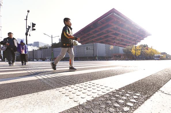 城市管理應該像繡花一樣精細。無障礙設施等細節(jié),是城市溫度的重要體現(xiàn)。過去人們常見的盲道多數(shù)建在人行道等處,記者看到,在上南路口過街的人行橫道線上,首次鋪設了過街盲道,并在路口的人行道安裝了盲文禁車柱,提高語音播報的指向性,打通了無障礙過街的堵點和斷點。