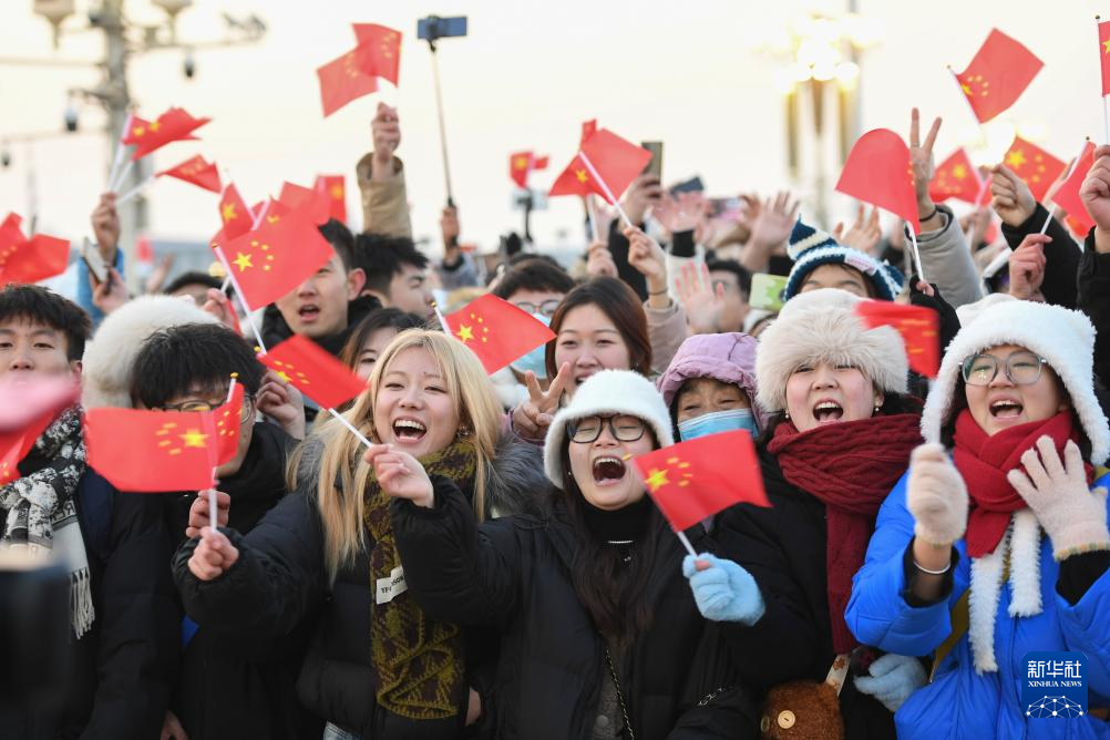 為親眼見(jiàn)證新年第一面五星紅旗冉冉升起,不少觀眾披著星光,凌晨一兩點(diǎn)就到廣場(chǎng)外圍等待?!邦^一次到北京,一定要感受下升國(guó)旗現(xiàn)場(chǎng)的震撼?!焙颖甭糜温殬I(yè)學(xué)院大一學(xué)生包興友,臉凍得通紅,但笑容燦爛?!白鳛槁糜螌I(yè)的學(xué)生,希望以后我能帶團(tuán)來(lái)看升旗,把這份激動(dòng)傳遞給更多人。”