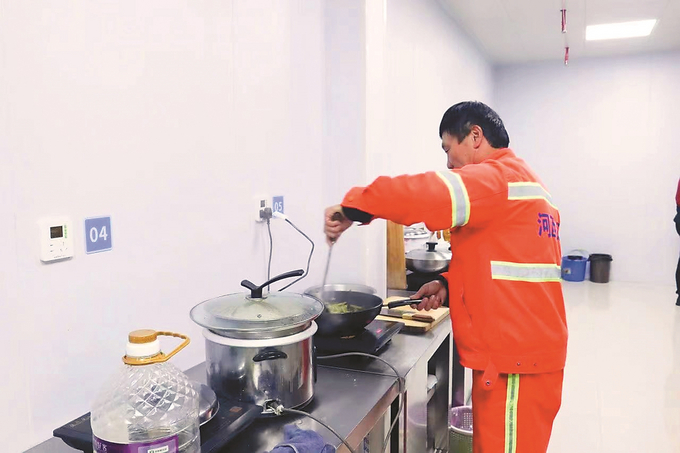 首先是解決環(huán)衛(wèi)工人吃飯的問題。河西建環(huán)征求意見時,超八成環(huán)衛(wèi)工人提出希望能自己燒飯。2023年10月,企業(yè)先后投入二十幾萬,在原來規(guī)劃小賣店的位置對水、電、地下管線等進行全面改造,建設(shè)公共廚房,并為“每家每戶”劃定使用區(qū)域。