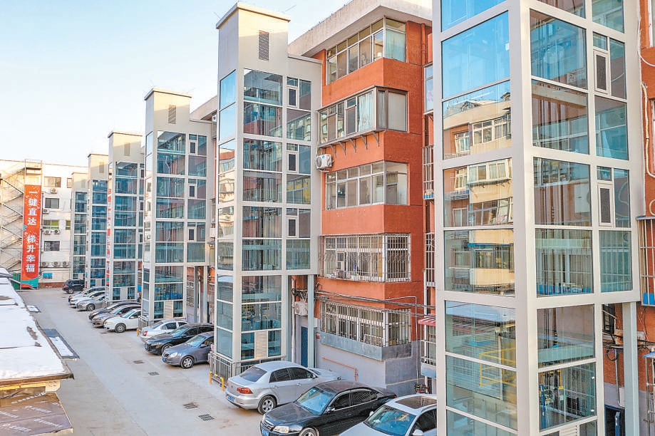 寒冬時(shí)節(jié),走進(jìn)石景山區(qū)金四區(qū)教工樓小區(qū),樓北側(cè)的新電梯整齊劃一?!爸挥酶囊淮?,屋里暖和了,電梯加上了,地下的排水熱力管道也要通通換新,挺好!”提起改造,已近古稀之年的居民王振相連連稱贊。