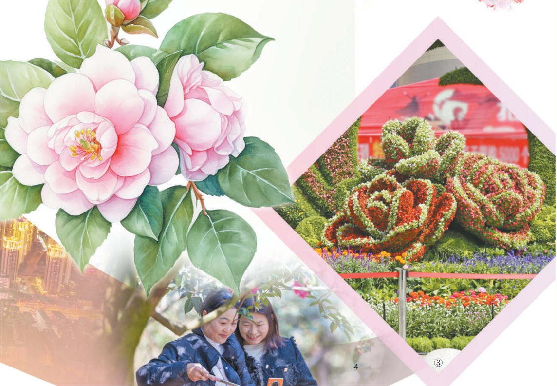 圖③:山茶花造型的立體花壇。昆明市園林綠化局供圖