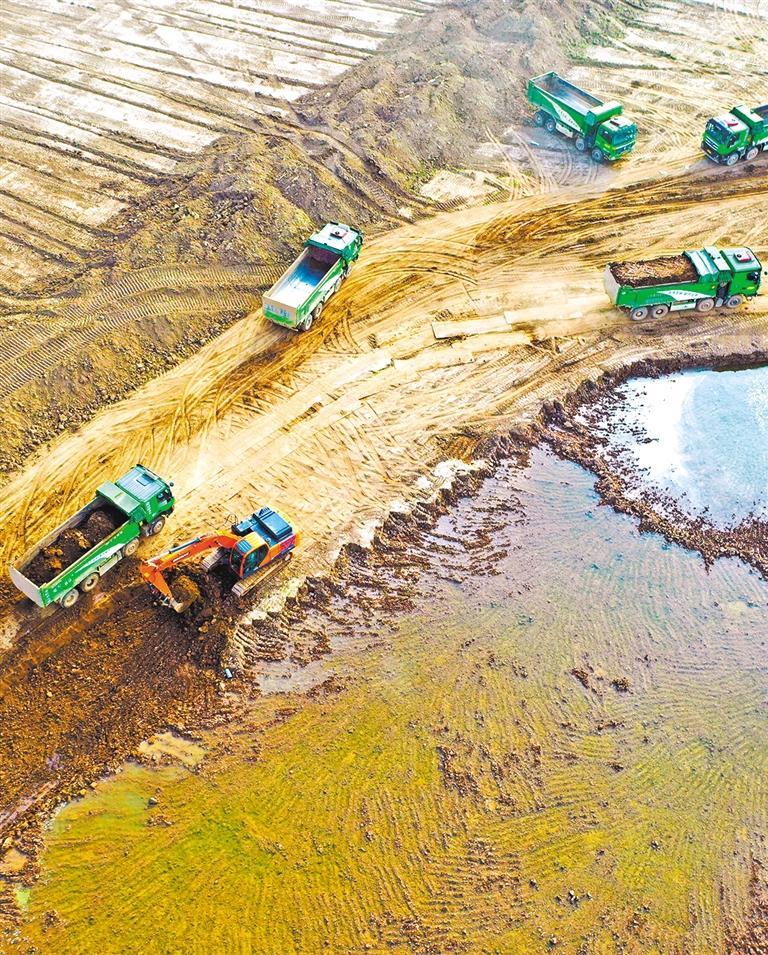 6月17日,施工人員在安徽省宿松縣華陽(yáng)河蓄滯洪區(qū)建設(shè)工程現(xiàn)場(chǎng)作業(yè)。李龍 攝(中經(jīng)視覺)