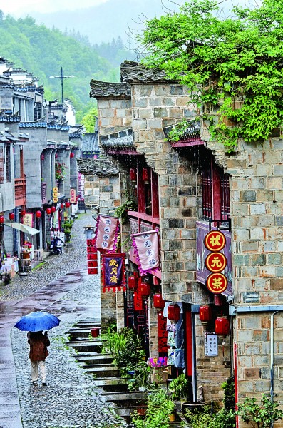 居民走在福建泰寧縣尚書巷歷史文化街區(qū)。