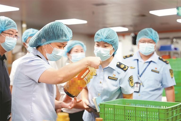 寶安市場監(jiān)管局執(zhí)法人員在學(xué)校檢查調(diào)味品質(zhì)量。
