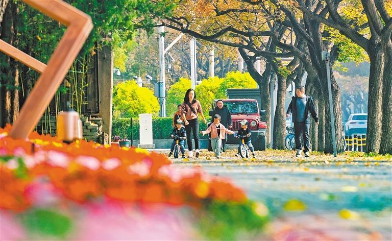11月1日,市民在日壇公園周邊花園式街區(qū)游玩。該片區(qū)域是北京首批花園式示范街區(qū),利用邊角地帶為市民打造了休憩、觀景的生活空間。