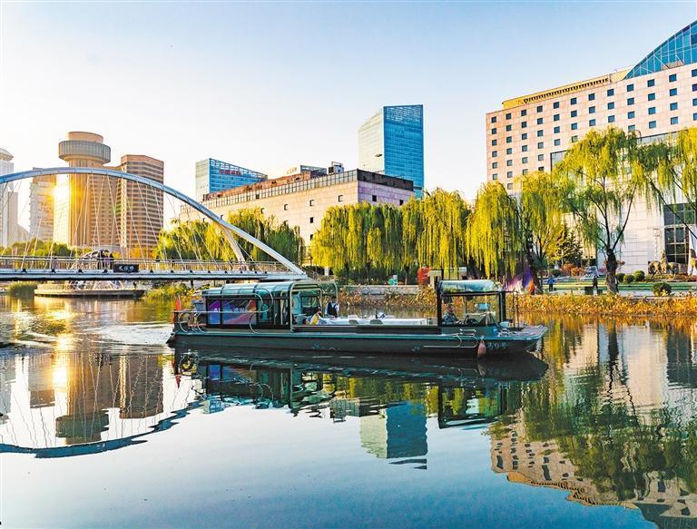 10月28日拍攝的亮馬河國際風情水岸景觀。朝陽區(qū)以河道復興帶動城市更新,打造了自然生態(tài)河岸和濱水景觀帶。