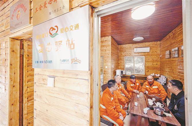 “交通一家親”愛(ài)心驛站為養(yǎng)路工人帶來(lái)便利,工作之余可在這里泡茶、讀報(bào)、聊天。(資料圖/記者 林銘鴻 攝)