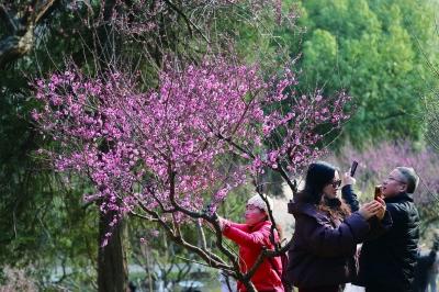 二月三日是立春節(jié)氣,古林公園內(nèi)梅花爭相開放,吸引市民游客前來賞花。