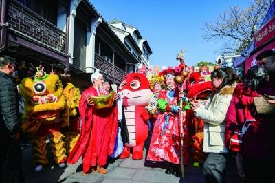 春節(jié)期間,夫子廟景區(qū)舉行民俗文化巡游活動(dòng),讓廣大市民游客感受濃濃年味和傳統(tǒng)文化魅力。