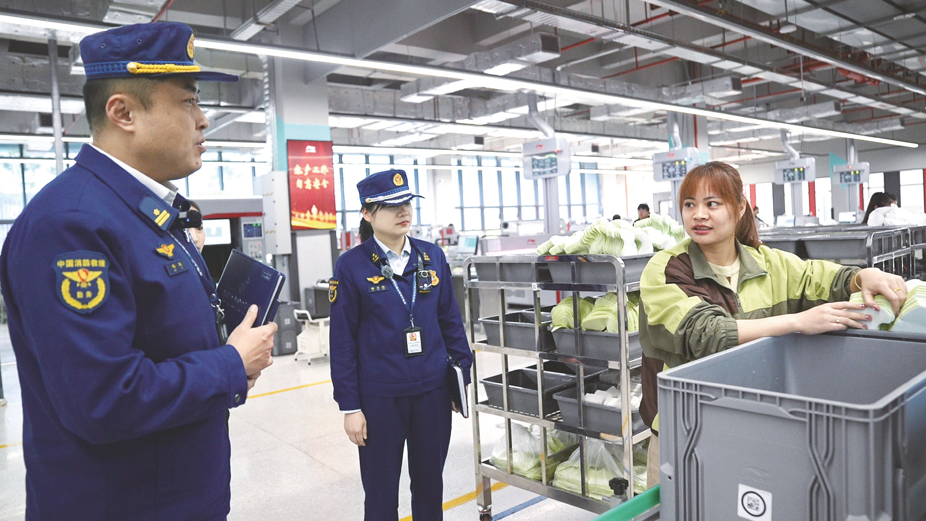 南寧市消防救援支隊(duì)的消防監(jiān)督員抽查企業(yè)員工掌握消防安全“四個(gè)能力”情況。(藍(lán)豪生 攝)