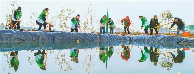 3月12日,湖南省永州市道縣上關(guān)街道虎子巖社區(qū),志愿者在植樹。陳磊 攝(中經(jīng)視覺)