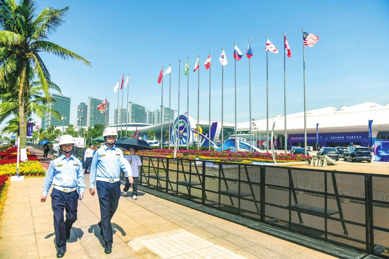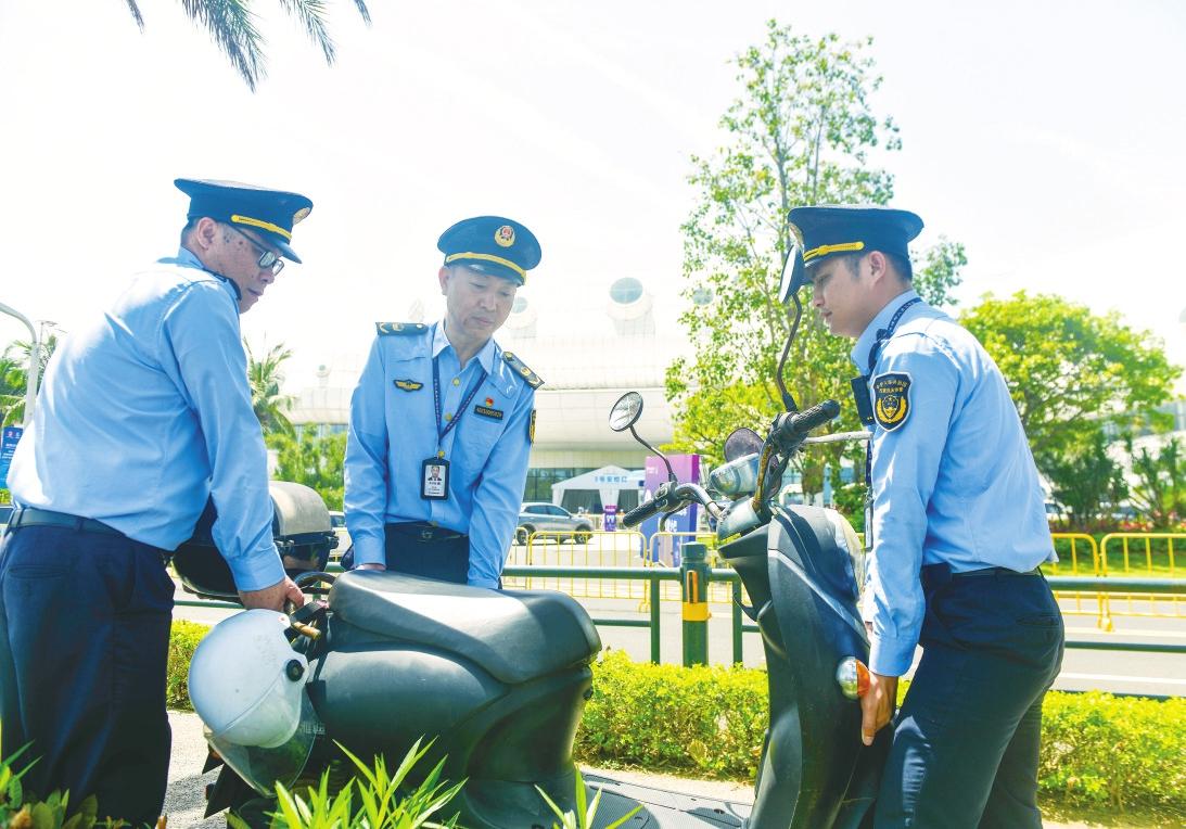 此外,作為支援力量的文化市場行政執(zhí)法支隊、海洋和漁業(yè)行政執(zhí)法支隊、生態(tài)環(huán)境保護行政執(zhí)法支隊,分別組織各單位骨干力量,參與消博會服務(wù)保障工作。