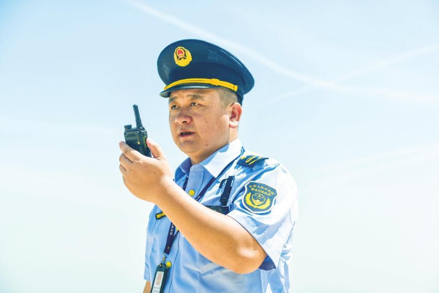 海口市綜合行政執(zhí)法局海洋和漁業(yè)行政執(zhí)法支隊第二執(zhí)法大隊一級科員衣志剛匯報消博會保障工作。