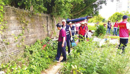 27日當(dāng)天,盡管烈日炎炎,但文化支隊(duì)黨員干部的熱情高漲。大家早早來(lái)到福安社區(qū),手持掃帚、鏟子、垃圾袋、滅蚊噴霧等工具,迅速投入到緊張有序的清掃工作中。