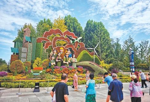 西單東北角“繁榮發(fā)展”主題花壇致敬各行各業(yè)勞動者。記者 方非攝