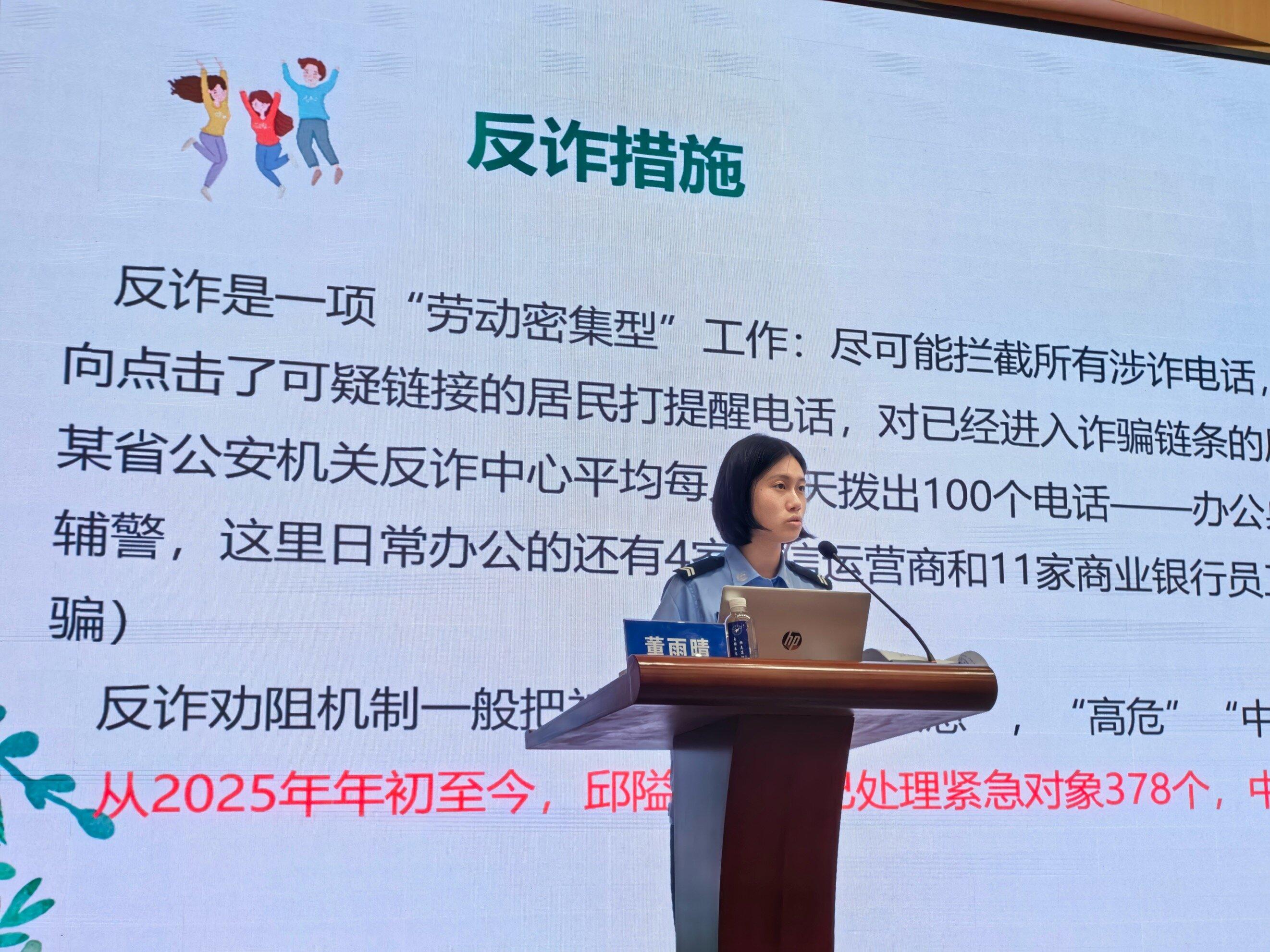 在報告廳內(nèi),另一場深度安全教育同步展開。邱隘派出所民警圍繞反詐、禁毒、防霸凌、意識形態(tài)四大主題,為學(xué)生們帶來一堂“干貨滿滿”的開學(xué)第一課。