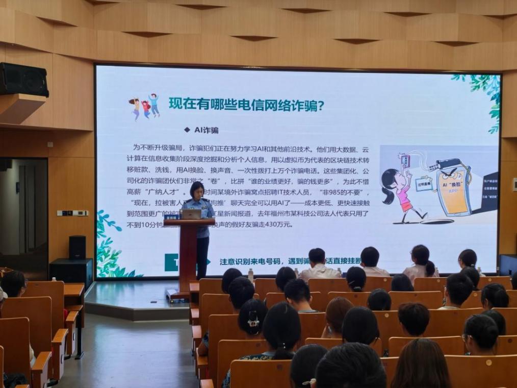 此外,民警還特別強調(diào)了意識形態(tài)安全這一重要議題。通過剖析近年來高校領(lǐng)域出現(xiàn)的典型案例,民警深入淺出地講解了當(dāng)前意識形態(tài)領(lǐng)域面臨的潛在風(fēng)險,教育引導(dǎo)學(xué)生要牢固樹立總體國家安全觀,自覺抵制錯誤思潮的侵蝕,提高對不良信息的辨別能力,不造謠、不信謠、不傳謠。講座強調(diào),維護意識形態(tài)安全是每一位師生的責(zé)任,要堅定理想信念,筑牢思想防線,共同守護清朗的校園網(wǎng)絡(luò)空間和健康的育人環(huán)境。