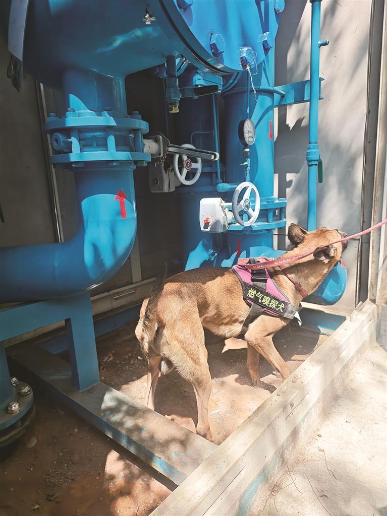 在實(shí)際工作中,嗅探犬沿燃?xì)夤芫€、閥門(mén)井、調(diào)壓箱柜等關(guān)鍵部位進(jìn)行巡檢。一旦發(fā)現(xiàn)異常,它們會(huì)以臥倒、靜立、用前爪刨地等特定動(dòng)作示警。工作人員隨即使用檢測(cè)儀器進(jìn)行復(fù)核,精準(zhǔn)定位泄漏點(diǎn)并及時(shí)處置,有效彌補(bǔ)了人工巡檢在主觀判斷點(diǎn)位測(cè)量方面的局限性。