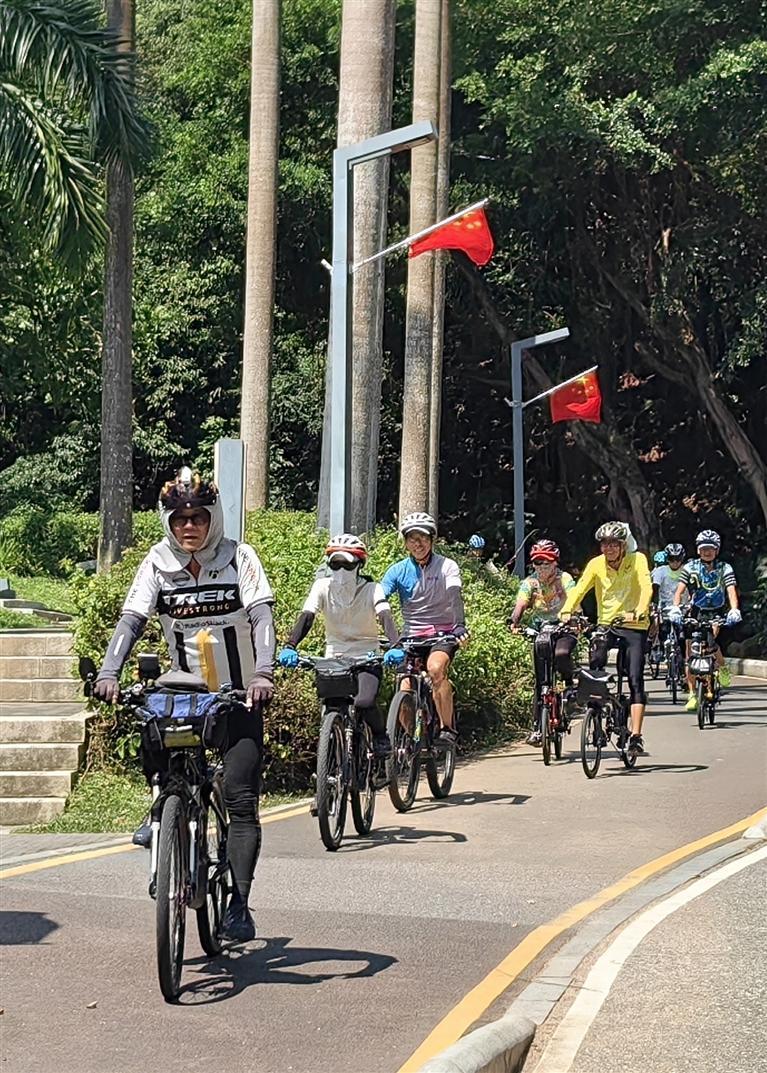 一組來自香港的騎行愛好者利用假期在淘金山綠道組隊騎行。