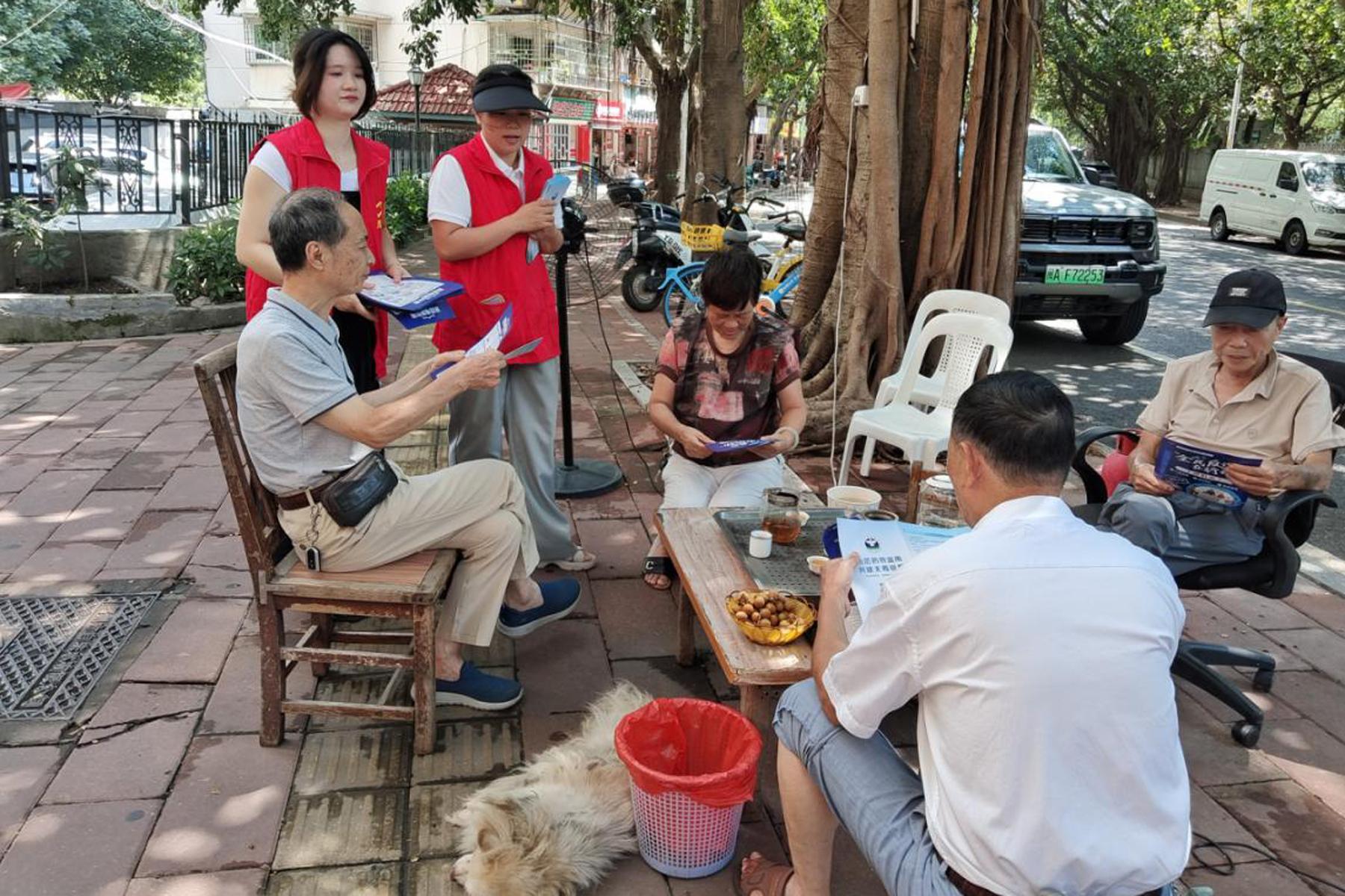 永興縣駐福州市流動黨委工作人員正在福州市區(qū)發(fā)放禁毒防詐宣傳資料。
