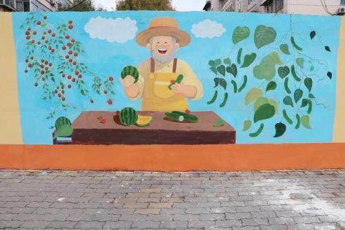 為讓墻繪作品既貼合城市文明建設(shè)要求,又貼近民生、便于傳播,雙方多次深度對(duì)接:一方面將垃圾分類、街巷環(huán)境提升等城管重點(diǎn)工作轉(zhuǎn)化為生動(dòng)畫面,讓市民在觀賞中直觀了解城管工作;另一方面融入濟(jì)陽(yáng)地標(biāo)、特色農(nóng)副產(chǎn)品、鼓子秧歌等本土元素,將抽象文明理念與地域文化轉(zhuǎn)化為場(chǎng)景化視覺內(nèi)容,增強(qiáng)群眾認(rèn)同感。