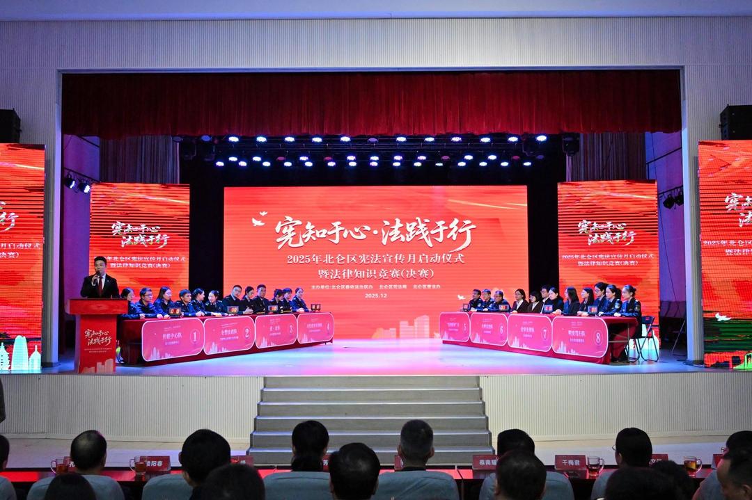 “3、2、1,開(kāi)始搶答!”12月2日下午,位于寧波市北侖區(qū)的張人亞會(huì)堂內(nèi),隨著主持人一聲令下,搶答器提示音此起彼伏,現(xiàn)場(chǎng)氣氛瞬間被推向高潮。這是2025年北侖區(qū)憲法宣傳月活動(dòng)啟動(dòng)暨“憲知于心?法踐于行”法律知識(shí)競(jìng)賽決賽的現(xiàn)場(chǎng)。8支從初賽中脫穎而出的代表隊(duì)在這里展開(kāi)巔峰對(duì)決,也為該區(qū)豐富多彩的憲法宣傳系列活動(dòng)拉開(kāi)了序幕。