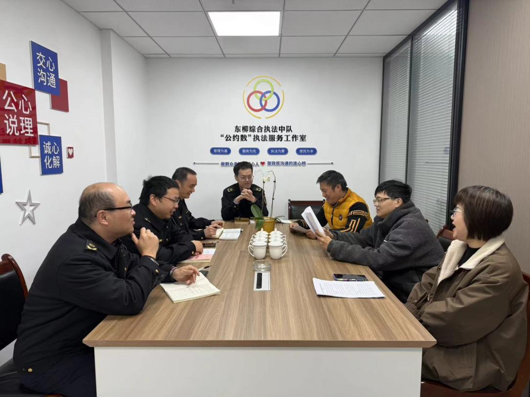 圖為東柳中隊在“公約數”執(zhí)法服務工作室與企業(yè)協(xié)商解決問題