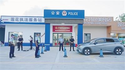 萬寧蓮花服務(wù)區(qū)執(zhí)法服務(wù)站實(shí)行多警種聯(lián)合執(zhí)勤。